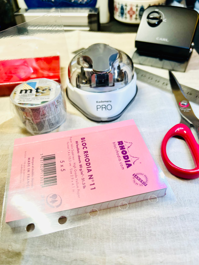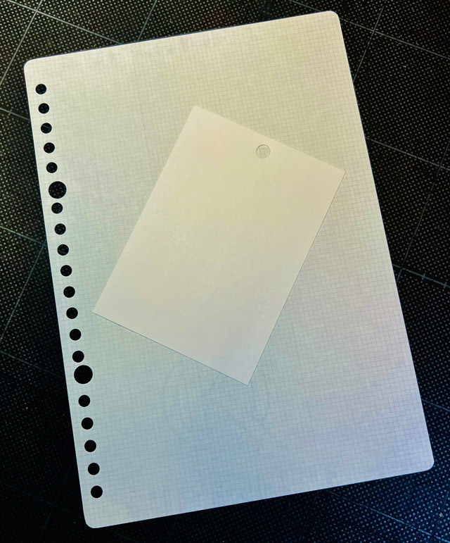 M5にはロディアを。まずラミネートに5穴をパンチング。