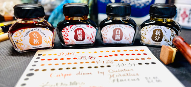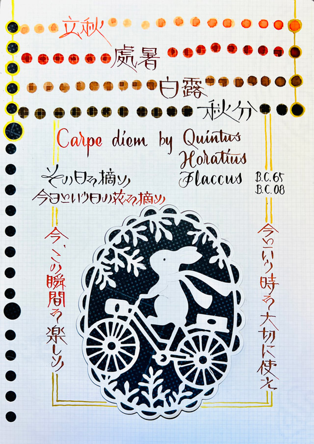 秋色インクのお色で、先月今月あわせた24節気名称と、