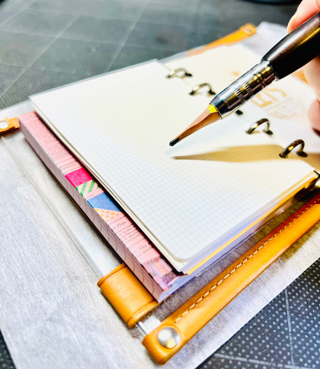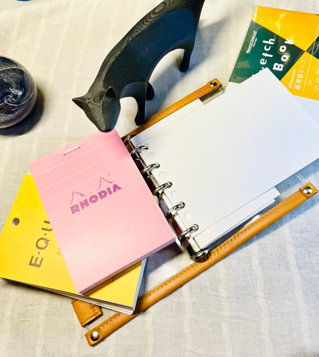 このディバイダ―付ロディアの厚みをつかって左側頁の下敷きに。