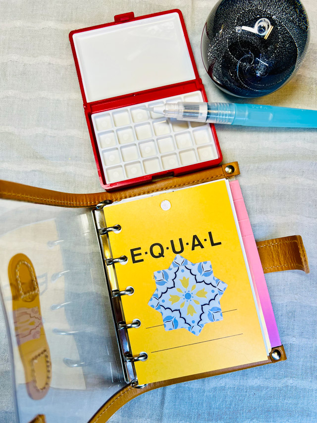 小さな絵の具パレットと水筆をセットして