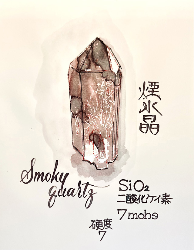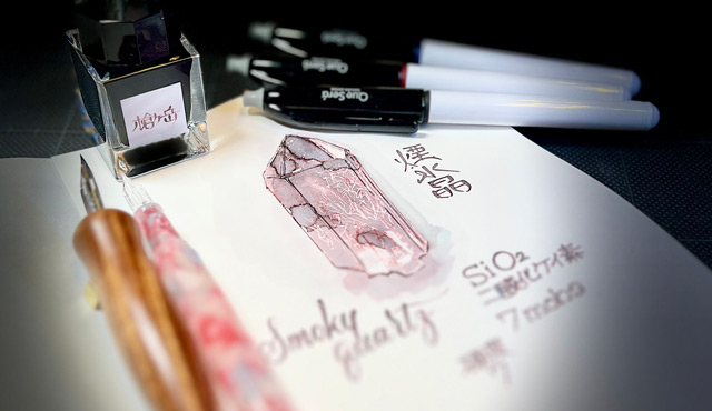 Gペンで鉱石名、ガラスペンで化学式とモース硬度を。