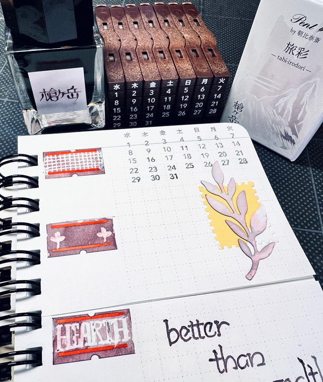 ミニカレンダースタンプも、「槍ヶ岳」インクで捺しました。
