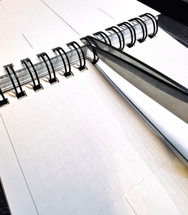 下書きと白抜き線として新発売の消せるボールペン「ケセラ」を使い、