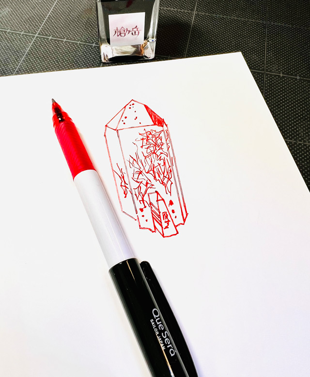 インクが乾いたらケセラの赤線をキャップの先で擦り落として、