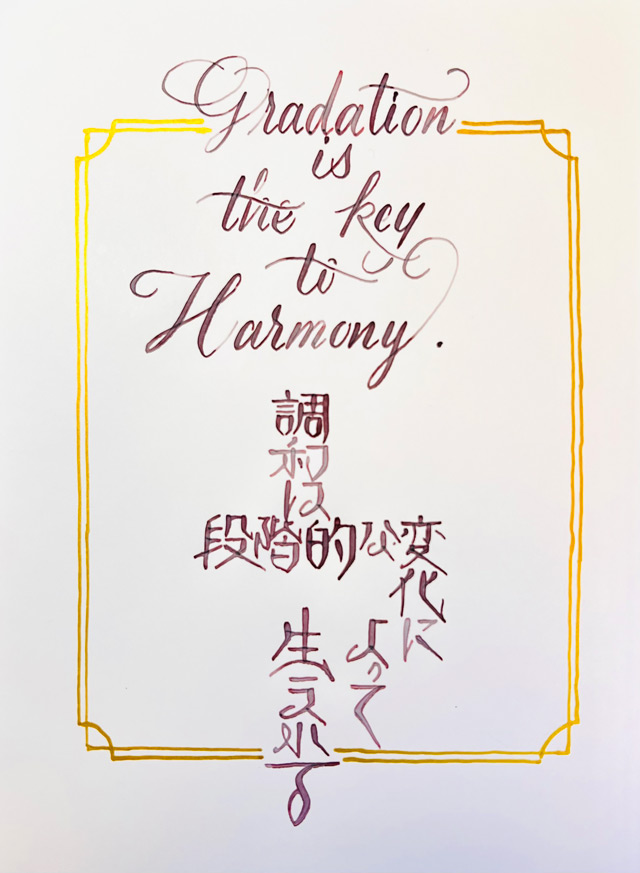 「槍ヶ岳」インクで好きな格言をGペンで。